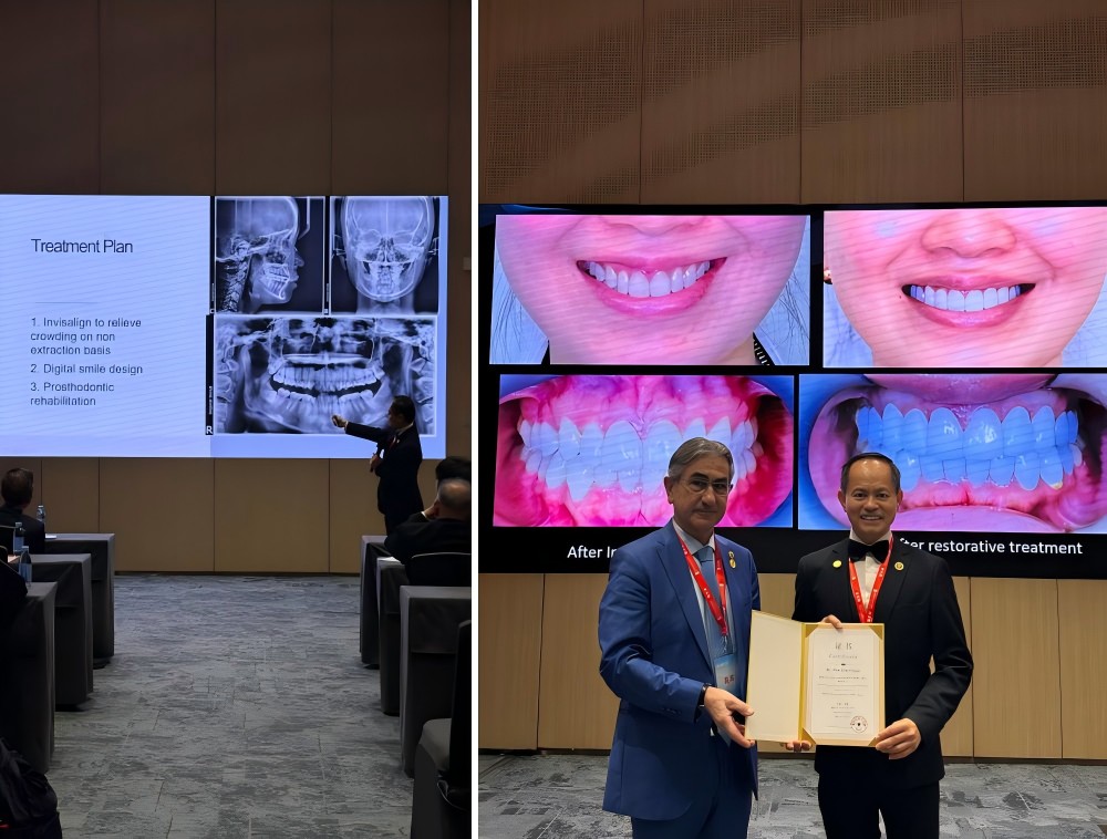 Prof. How presented advanced principles of biomechanical control using clear aligners, showcasing case selections, troubleshooting strategies, and the integration of neuromuscular balance and TMJ considerations. His presentation emphasized primary oral health as a foundation for orthodontic predictability and long-term stability.