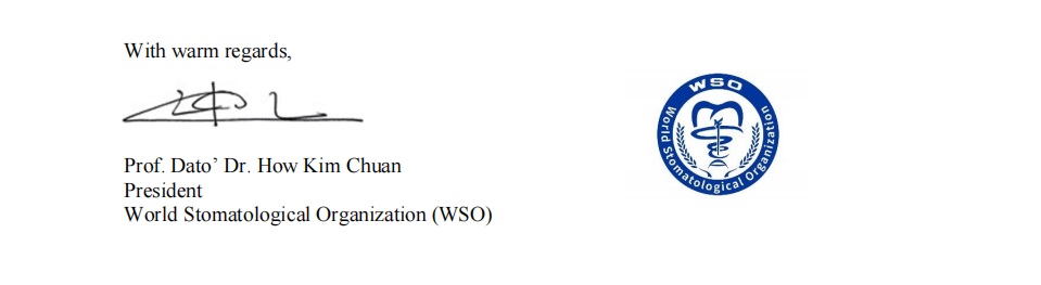 A major pillar of this vision is the World Stomatological Academy (WSA), the educational arm of WSO, chaired by Emeritus Professor Datuk Dr Hashim Yaacob. His longstanding academic leadership and guidance have been invaluable in advancing our mission in education, professional development, and academic exchange.